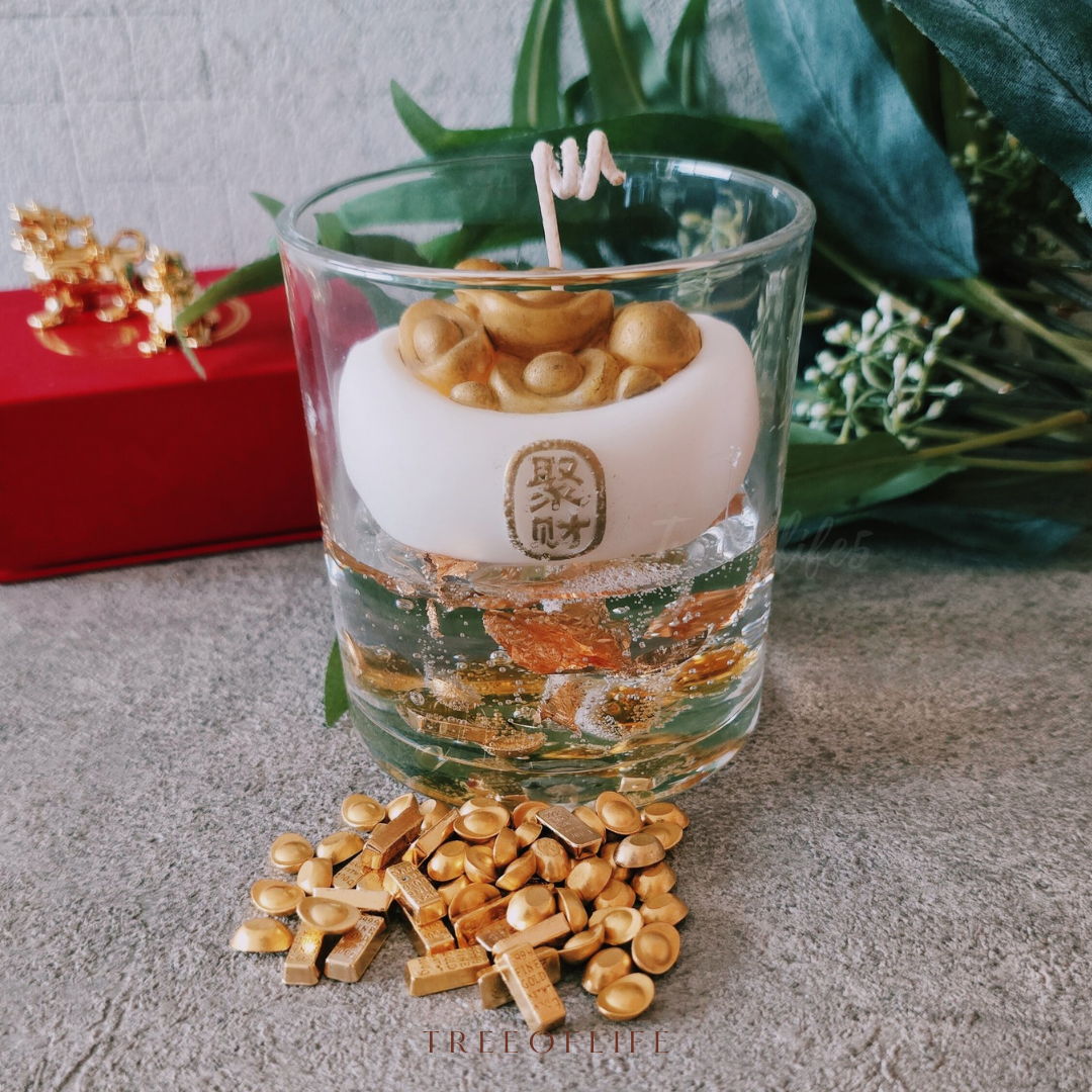 使用方式:擺飾或燃燒白色聚寶盆蠟燭